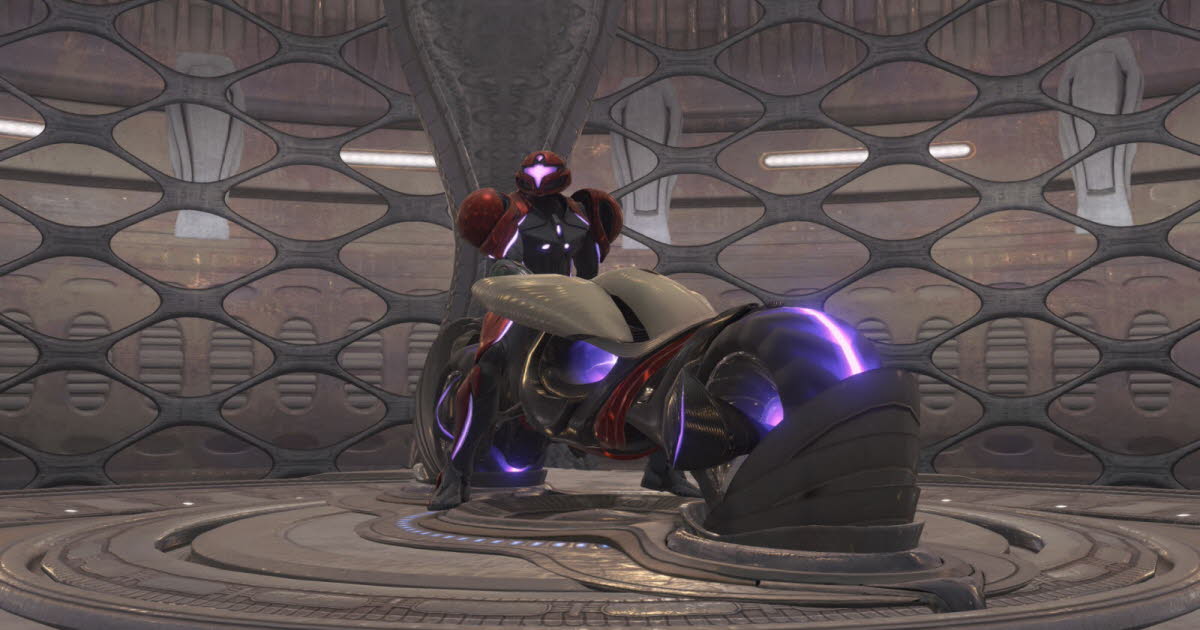 Ce qui pourrait faire sourire, c’est cette moto futuriste, la Vai-O-La, que Samus se procure dans cet épisode pour naviguer dans une zone de hub. La zone en question est un monde ouvert, mais assez dépourvu de vie et de détails. La moto, ressemblant à une version moderne de la Batmobile, confère à la chasseuse un nouveau look qui la transforme totalement. Son design en rouge et violet est particulièrement séduisant, renforçant son image de combattante puissante et stylée.