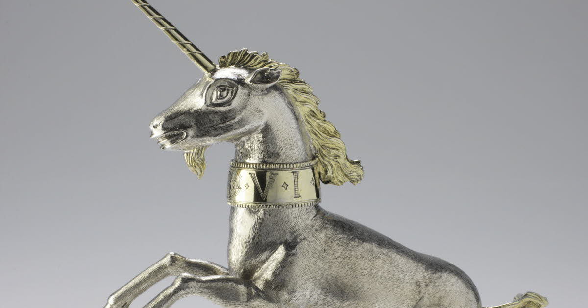 Son pelage présente une teinte argentée, tandis que ses sabots sont surmontés d’une fine couche d’or, créant un contraste saisissant avec la brillance de sa longue corne en spirale. Sa crinière, sa barbichette et sa queue partagent cette même lumière éclatante, conférant à cette créature une allure à la fois élégante et éclatante. Fidèle œuvre de l’orfèvre Johannes Werner, originaire de Mulhouse, réalisée aux alentours de 1560 et restée intacte jusqu’à aujourd’hui, cette licorne a su préserver sa beauté au fil des siècles, sans jamais que le précieux métal qui la compose ne soit fondu ou altéré. Sa présence immuable dans le temps témoigne de la finesse de l’art et de la valeur historique de cette pièce exceptionnelle. Son éclat, sa postérité et son allure majestueuse en font un véritable témoin du savoir-faire artisanal de l’époque, conservé avec soin à travers les âges.